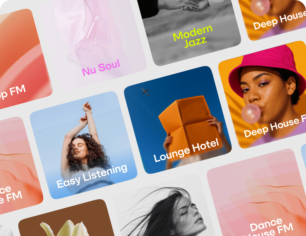 Czołowi DJ-e i muzycy tworzą stacje dopasowane do charakteru Twojej marki, pory roku oraz poru dnia.
